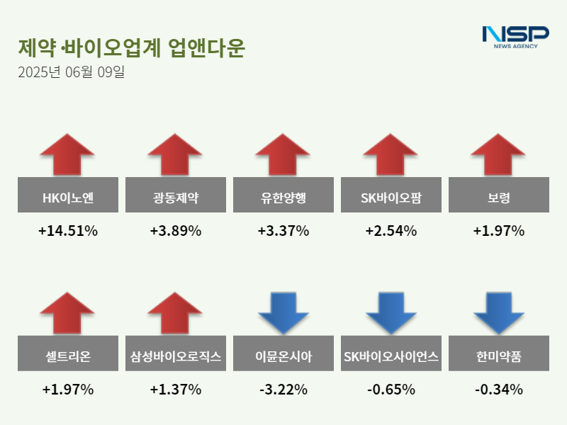 광동제약은 전거래일 대비 3.89%(220원) 올라 5880원으로 장을 끝냈고 유한양행은 전거래일 대비 3.37%(3500원) 올라 10만7300원으로 장을 마쳤다.