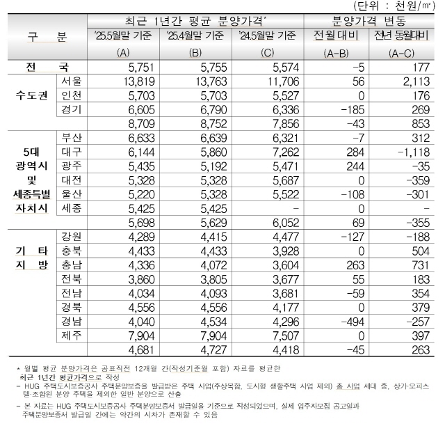 (서울=NSP통신) 강은태 기자 = 5월말 기준 전국 민간아파트 평당 평균 분양가가 575만1000원으로 전월대비 0.08% 하락했다.
