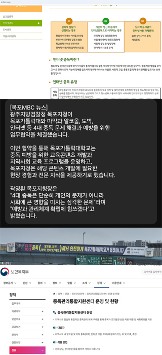 또 인천 동구, 계양구 중독관리통합지원센터의 경우 홈페이지에 게임 중독에 관한 내용을 명기하고 있음에도 불구하고, 현장 방문 결과 구체적인 중독 진단이나 치료 기준을 정하고 있지 않으며 관련 문의를 스마트쉼 센터로 넘기는 방향으로 업무를 처리하고 있었다.