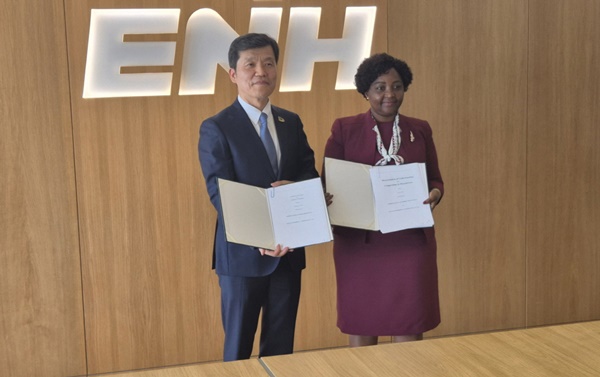 대우건설 조승일 플랜트사업본부장이 모잠비크 ENH와 MOU를 체결한 후 기념사진을 찍고 있다. (사진 = 대우건설)