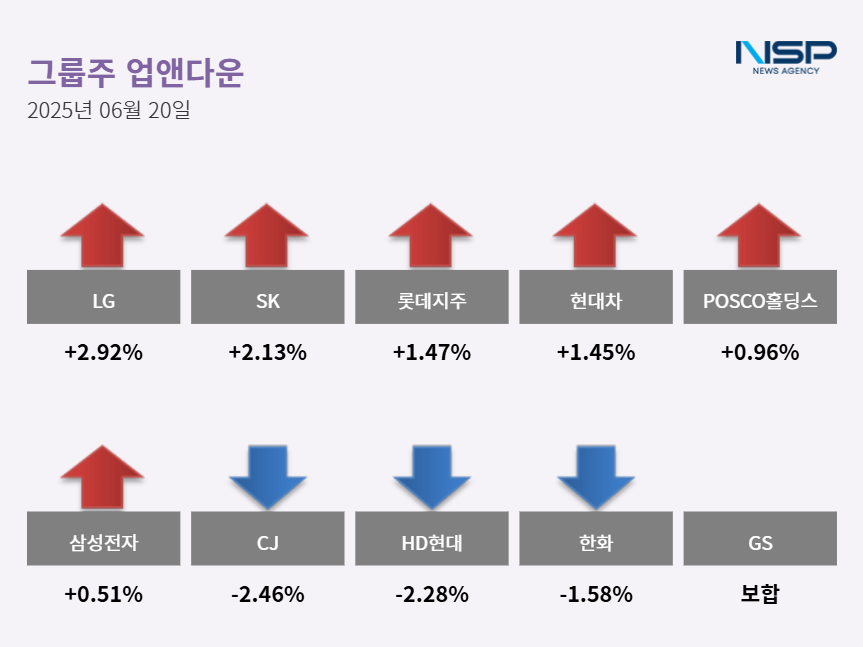 LG와 SK는 2.92%(2200원), 2.13%(4100원) 올라 7만7500원, 19만6700원에 거래됐다.