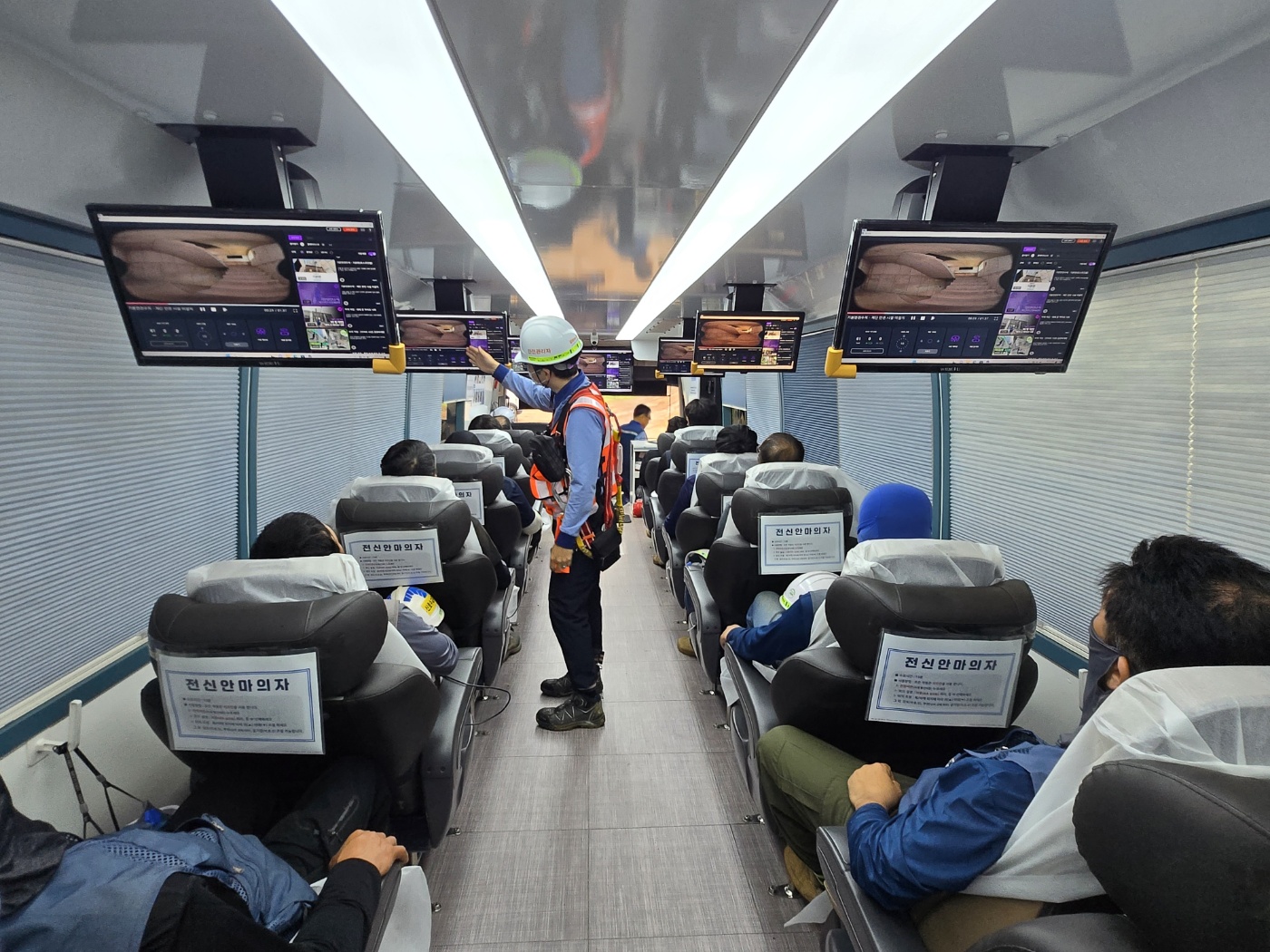 현장별로 폭염을 대비한 충분한 수량의 보냉 장구와 휴게시설도 확보하고 있다. 2023년부터 도입한 친환경 휴게시설을 현장에 설치했으며 휴게시설 설치가 어려운 현장에는 버스를 이용한 ‘찾아가는 이동 쿨 쉼터’를 활용해 근로자들이 편안하게 휴식을 취할 수 있도록 했다.