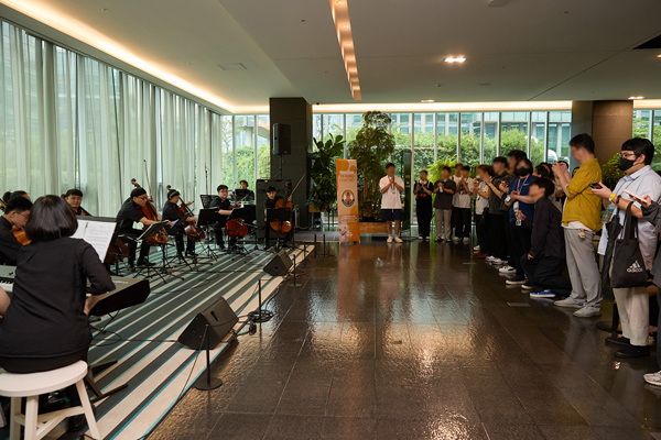 NDC 25 기간 매일 열리는 넥슨 사운드팀 밴드와 네오플 장애인 첼로 연주단 앙상블 힐의 넥슨 게임 OST 버스킹 공연은 현장 분위기를 더욱 풍성하게 했다.