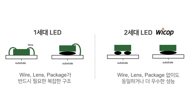 세계 최초의 노와이어 구조를 적용한 와이캅은 휴대폰, TV, 조명, 자동차 헤드램프 등 다양한 분야에서 성능을 입증해 왔으며 가혹한 자동차 환경에서도 밝기와 내구성을 인정받아 자동차 디스플레이 시장에도 본격 공급을 시작했다.