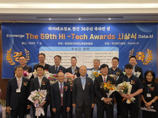 이날 70여 명의 오피니언 리더들과 오찬을 겸한 ‘하이테크정보·Data&AI 창립 36주년 기념 59회 하이테크 어워드’에서는 IT 혁신, 가상화폐 신기술, SW 융합기술, 인공지능(AI) 협업 플랫폼, 금융정보화, 클라우드 솔루션, IT 자산 통합관리, 클라우드, 오픈소스 활용 SaaS, 보안 등 9개 부문 대상 수상자 10명에 대한 시상을 진행했다.