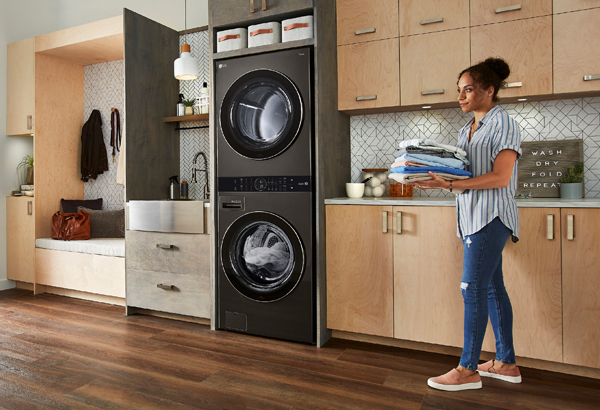LG전자는 지난 2020년 국내 최초로 세탁기와 건조기를 타워형으로 결합한 LG 워시타워를 선보이며 복합형 세탁건조기 시장을 열었다. LG 워시타워는 동급의 드럼 세탁기와 건조기를 위아래로 설치할 때보다 약 9cm 낮게 설계돼 공간 효율성이 뛰어나다.