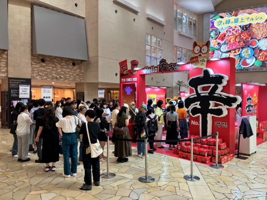 (서울=NSP통신) 박유니 기자 = 농심이 일본 오사카에 위치한 한큐 백화점 본점에서 오는 28일까지 ‘헬로(Hello!) 신(辛)라면’을 테마로 팝업스토어를 실시한다. 서일본 최대 규모 백화점에서 운영하는 팝업스토어를 통해 현지 K라면 대표 브랜드 입지를 강화할 계획이다.