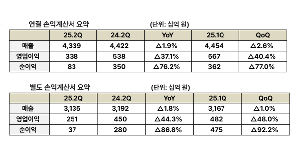 2분기에는 고객 유심 교체와 대리점 손실보상 등 일회성 비용 반영으로 영업이익은 전년동기 대비 37.1%, 당기순이익은 76.2% 감소했다. 별도 기준 매출은 3조1351억 원, 영업이익 2509억 원, 당기순이익 369억원을 기록했다.