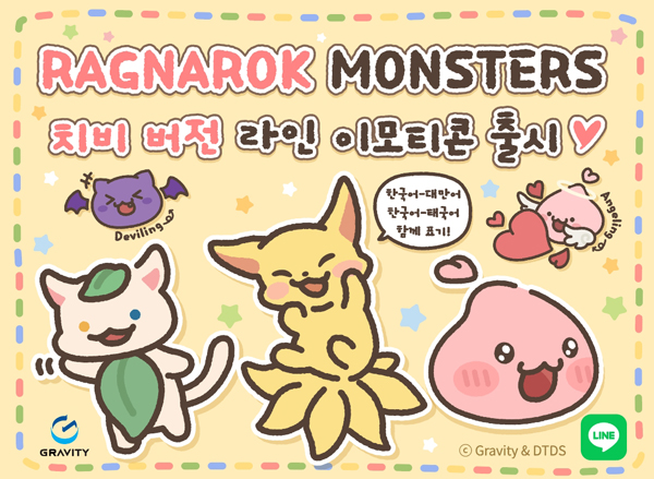 또 라그나로크 23주년을 기념해 전 세계 유저들이 메신저에서 유용하게 활용할 수 있도록 히드라, 앰버나이트, 드롭프스, 호넷, 이클립스 등 신규 라그나로크 몬스터즈 캐릭터들로 제작했다.