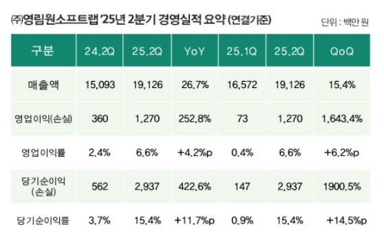 영림원소프트랩, 2Q 전년比 매출 26.7%↑·영업이익 252.8%↑