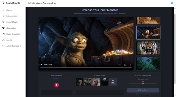 현장에서는 방문자가 마이크를 통해 말을 하거나 사운드를 업로드하면 즉각 특정 몬스터의 울음이나 포효 같은 음색으로 변환되는 체험형 데모가 제공되며 온라인 데모 페이지도 공개해 현장에 오지 못한 이들도 이 첨단 기술을 체험할 수 있다.