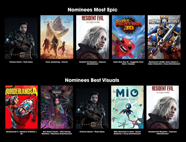 최고의 비주얼은 게임의 뛰어난 그래픽과 시각적 임팩트를 준 게임, 에픽은 장대한 내러티브와 강렬한 게임플레이로 인상을 준 게임이다.