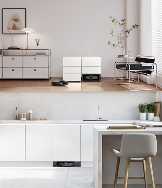 히든 스테이션은 주방의 ‘데드 스페이스’(문 뒤, 코너 등 활용이 어려운 빈 공간)인 싱크대 걸레받이 부분에 설치가 가능하다. 사용하지 않을 때는 로봇 청소기가 스테이션으로 쏙 들어가 보이지 않는다. 자동 개폐 도어를 적용해 로봇청소기가 청소를 시작하거나 끝낼 때 알아서 드나들고 평소에는 깔끔한 외관을 유지하게 했다.