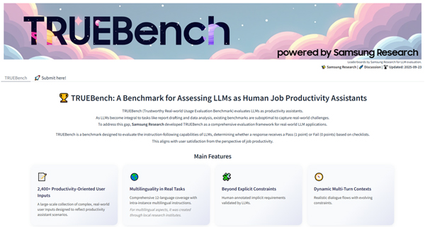 (서울=NSP통신) 이복현 기자 = 삼성전자(005930)가 자체 개발한 AI 업무 생산성 벤치마크 ‘트루벤치(TRUEBench, Trustworthy Real-world Usage Evaluation Benchmark)’를 공개했다.
