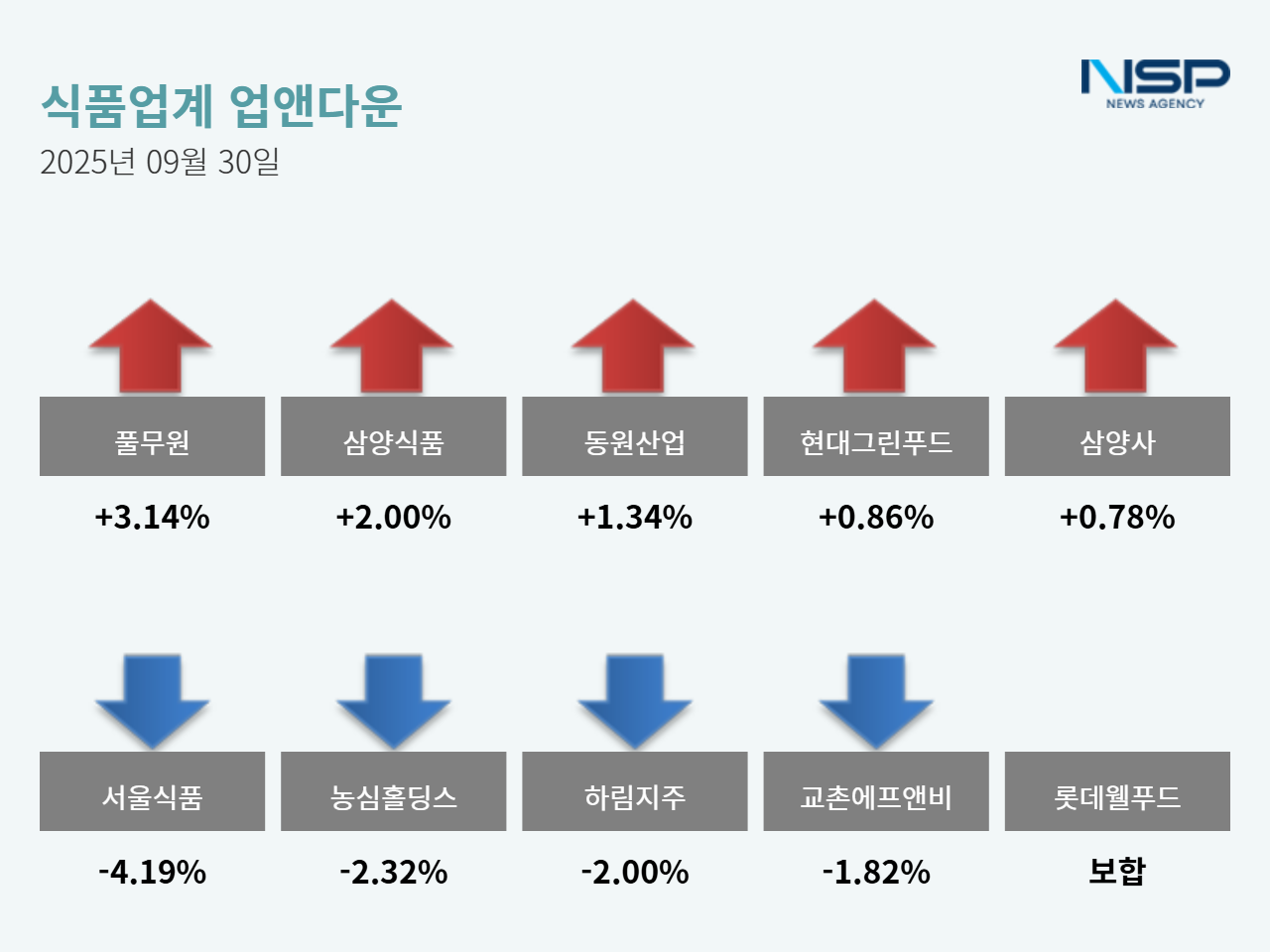 롯데웰푸드, 매일유업 등은 보합으로 장을 끝냈다.