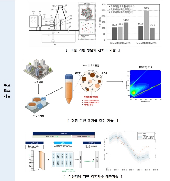 또한 하수처리시설 내 각 단계에서 수질 지표와 병원체 농도의 관계를 분석한 결과 형광 기반 기술로 측정된 유기물 지표들과 병원체 농도 간에는 높은 상관관계도 확인됐다.