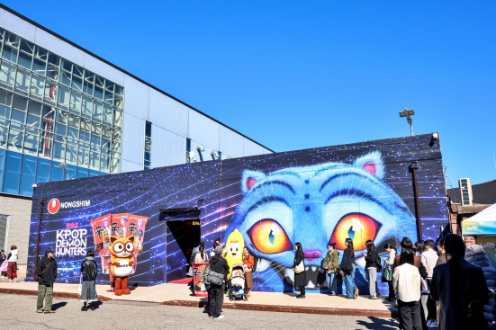 농심은 행사장 중앙에 마련된 K푸드 체험공간 ‘F&B Zone’ 인근에 농심 플래그십 부스를 마련했다. 부스 내부에 미국 현지에서 판매 중인 ‘케이팝 데몬 헌터스’ 협업 신라면을 선보이며 K푸드 대표 농심 브랜드의 위상을 알리고 있다.