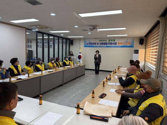 (전남=NSP통신) 김성철 기자 = 광양시 금호동은 2026년 노인일자리 사업의 본격적인 시작을 앞두고 지난 3일 금호동사무소에서 ‘2026년 노인일자리사업 안전 및 활동 교육‘을 실시했다고 밝혔다.