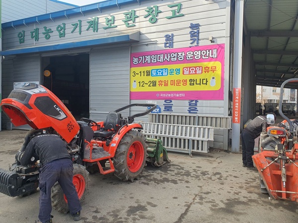 (전남=NSP통신) 김용재 기자 = 곡성군이 오는 3월 1일부터 군 농기계임대사업장의 휴일 근무 체계를 토요일 근무, 일요일 휴무 방식으로 변경한다.
