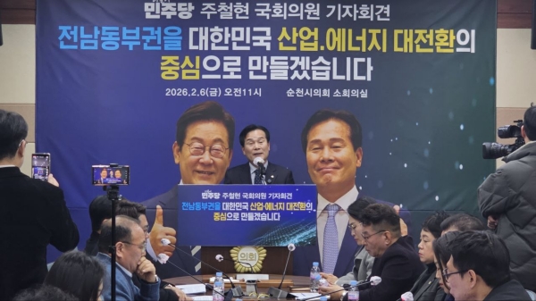 주 의원은 6일 오전 순천시의회 소회의실에서 개최한 기자회견을 통해 “전남·광주 통합특별법 논의 과정에서 명칭과 청사 소재지를 두고 격렬한 이견이 있었으나 동부권의 이익이 제도적으로 보장되어야 한다는 원칙을 관철했다”고 밝혔다.