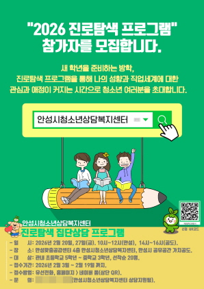 (경기=NSP통신) 김병관 기자 = 경기 안성시청소년상담복지센터(센터장 송인철)는 오는 20일과 27일 2일간 청소년을 대상으로 ‘겨울방학 프로그램 - 진로탐색’을 운영한다.