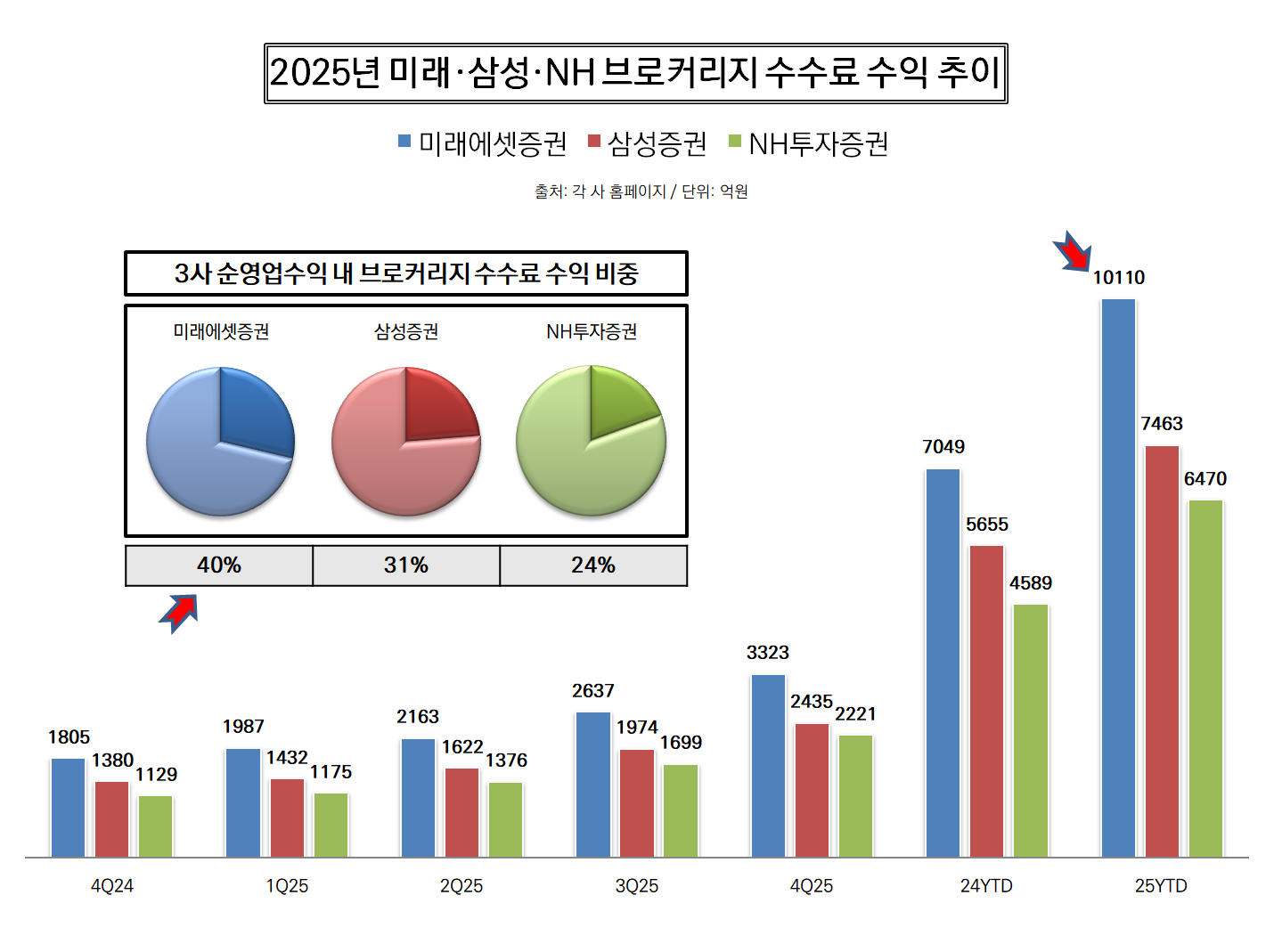◆2025년 주요 실적은 ‘브로커리지 수수료’, 미래에셋 ‘강자’…삼성·NH는 추격