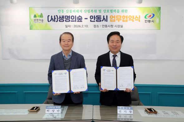 권기창 안동시장은 “산불로 상처 입은 안동의 산림을 복원하기 위해 선뜻 힘을 보태준 생명의숲에 깊은 감사를 드린다”며 “이번 협약을 계기로 안동의 숲이 더욱 건강하게 회복되고 많은 시민이 숲의 소중함을 다시 한번 되새기는 계기가 되길 바란다”고 밝혔다.