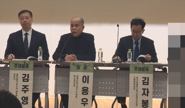 (왼쪽부터) 김주영 변호사(법무법인 한누리), 이용우 경제더하기연구소 대표(전 국회의원), 김자봉 박사(한국금융연구원) (사진 = NSP통신)