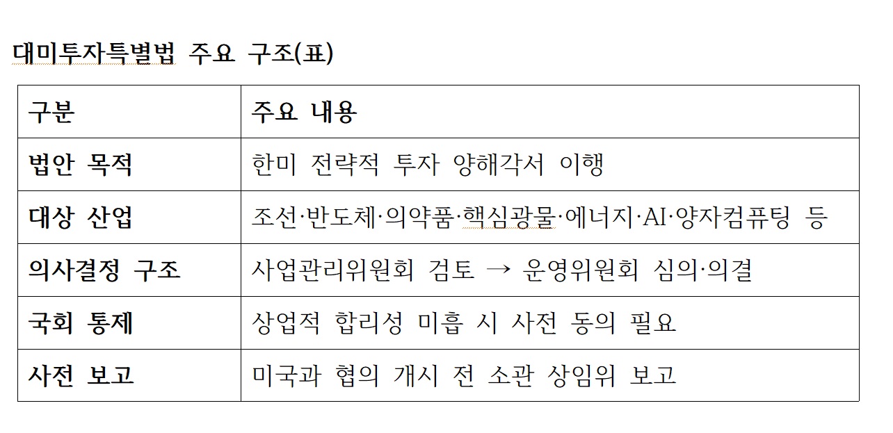 대미투자특별법 주요 구조(표) (표 = NSP통신 강은태 기자)