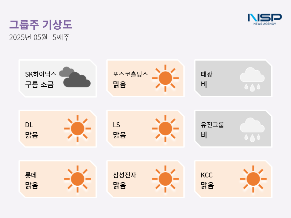 (서울=NSP통신) 최아랑 기자 = 5월 마지막 주 주요 기업들은 신사업과 기술혁신에 속도를 내며 대체로 맑은 흐름을 보였다. SK하이닉스, 포스코, DL, 롯데, 삼성전자 등은 AI, 이차전지, 탄소저감 등에서 성과를 냈고 KCC는 유튜브 마케팅으로 주목받았다. 반면 태광은 비자금 수사, 유진그룹은 노조와의 갈등으로 흐림을 맞았다. 기업 기상도에 기술과 실적만큼이나 노사관계와 투명성이 중요한 변수다.