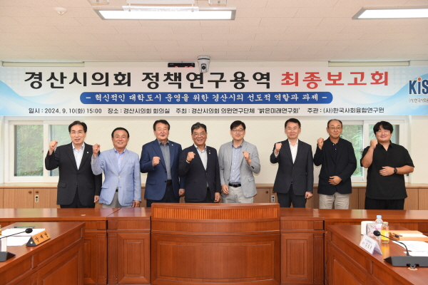 (경북=NSP통신) 김대원 기자 = 경산시의회 의원연구단체 ‘밝은미래’ 연구팀(대표 양재영)은 10일 의회 운영위원회 회의실에서 ‘혁신적인 대학도시 운영을 위한 경산시의 선도적 역할과 과제’ 를 주제로 연구용역 최종보고회를 개최했다.