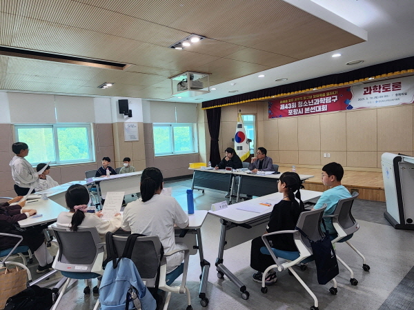(경북=NSP통신) 김대원 기자 = 경상북도포항교육지원청(교육장 최한용)은 지난 10일 발명교육센터 및 세미나실에서 초·중학생 55팀(110명)이 참가한 제43회 청소년과학탐구 포항시대회를 개최했다.