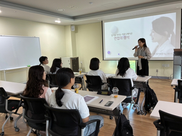 특히 스피치 교육시간에는 실제 면접 장면을 상정한 모의면접과 피드백, 자기소개 시연을 통해 학생들이 직접 경험하며 실력을 키울 수 있는 기회가 제공됐고 발음, 자세, 눈빛 등 비언어적 표현의 중요성에 대해서도 실습을 통해 깊이 있게 배울 수 있는 시간이 됐다.