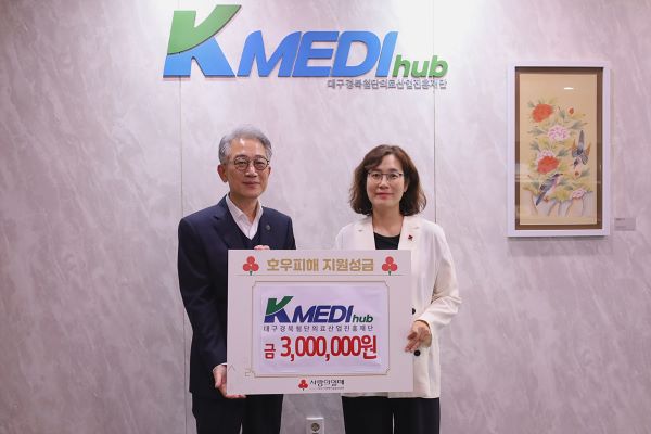 (대구=NSP통신) 장석 기자 = 케이메디허브(대구경북첨단의료산업진흥재단, 이사장 박구선)는 지난 18일 집중호우 피해지역 및 이재민 지원을 위해 성금 300만 원을 사회복지공동모금회에 기탁했다.