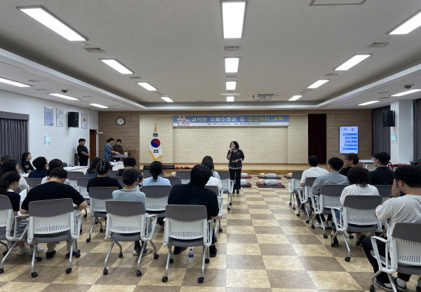 이번 교육은 예기치 못한 갑작스러운 심정지나 응급 상황 발생 시 신속하고 정확한 대처 능력을 함양하고 안전한 직장 환경과 교육 현장 조성을 위해 대한구조협회 소속 전문 강사를 초빙하여 심폐소생술(CPR), 자동심장충격기(AED) 사용법, 각종 위급 상황별 대처법 등을 교육했으며 실습 위주의 교육을 통해 참여 교직원들이 응급처치 기술을 실제 상황에서 바로 적용할 수 있도록 했다.