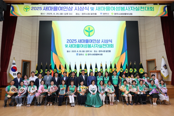 (경북=NSP통신) 조인호 기자 = 경주시새마을회(회장 박정원)는 경주시 새마을부녀회(회장 정명숙) 주관으로 지난 26일 경주시청 알천홀에서 ‘2025년 경주시 새마을 여인상 시상식 및 새마을 여성봉사자 실천대회’를 개최했다.