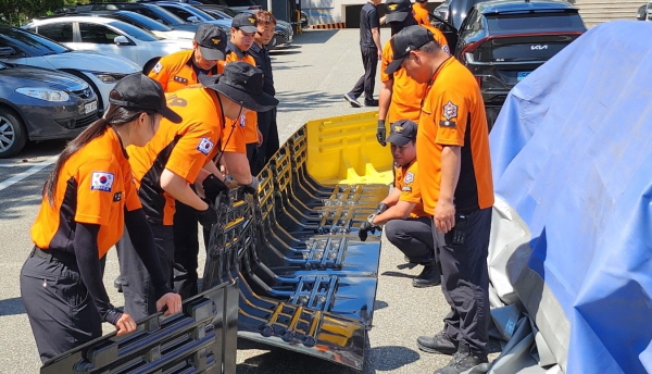 주요 내용으로는 ▲전기차 구조 및 배터리 종류, 고전압 시스템 이해 ▲전기차 전원 차단 및 안전조치 실습 ▲특수 장비(질식소화덮개·이동형 침수조) 활용 진압훈련 등이다.