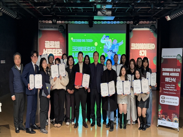 (경북=NSP통신) 김대원 기자 = 대구광역시와 대구문화예술진흥원(이하 문예진흥원)은 지난 16일 대구예술발전소 수창홀에서 대구관광 SNS 기자단 ‘크리에이터D’와 외국인 기자단 ‘글로벌 서포터즈’ 대상으로 해단식을 개최하며 성황리에 활동을 종료했다.