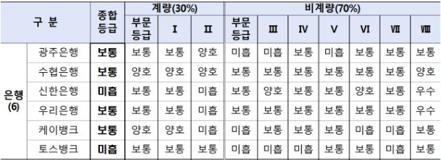 금감원은 “평가항목 등급이 ‘미흡’인 금융회사에 대해서는 개선계획을 제출받아 이행실적을 점검하는 한편 종합등급 ‘미흡’ 회사에 대해서는 경영진 면담을 실시할 것”이라고 밝혔다.