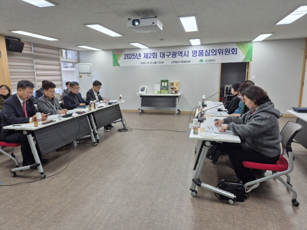 (경북=NSP통신) 김대원 기자 = 대구광역시는 지난 22일 산격청사 제5회의실에서 ‘2025년 제2회 대구광역시 명품심의위원회’를 개최했다. 이날 위원회는 관내에서 생산된 친환경 우수 농축특산물 7건의 명품인증 신청 품목에 대해 심사를 진행했다.