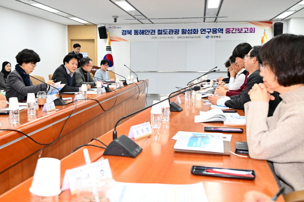 (경북=NSP통신) 조인호 기자 = 경상북도는 21일 도청 중회의실에서 지난 8월 착수보고회 이후 ‘경북 동해안권 철도관광 활성화 전략 수립 연구용역’ 중간보고회를 개최했다.