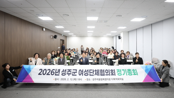 (경북=NSP통신) 김대원 기자 = 성주군여성단체협의회는 지난 12일 성주어울림복합타운 다목적회의실에서 50여 명의 회원이 참석한 가운데 2026년도 정기총회를 개최했다.