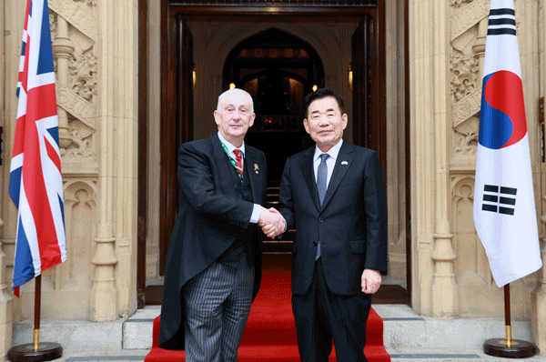 하원의장 접견실에서 이뤄진 호일 의장과의 면담에서 김 의장은 “우리 국민들은 한국전 당시 미국에 이어 두 번째로 많은 병력을 지원해 한국의 자유 민주주의를 위해 싸웠던 영국인들의 숭고한 희생을 기억한다”며 “작년 한-영 수교 140주년을 맞이하는 해에 양국 관계가 '글로벌 전략적 동반자 관계'로 격상돼 기쁘다”고 말했다.