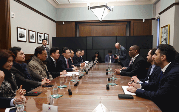 이에 퍼거스 의장은 김 의장과 대표단의 방문을 환영하면서 자원 부국인 캐나다는 녹색수소, 전기차 배터리 등 친환경 분야에서 한국 기업과 공조해 전문성을 함께 활용할 수 있는 기회가 많고 양국 간에 이해관계가 부합하는 부분이 많기 때문에 양국이 함께 번영·상생할 수 있다고 말했다.