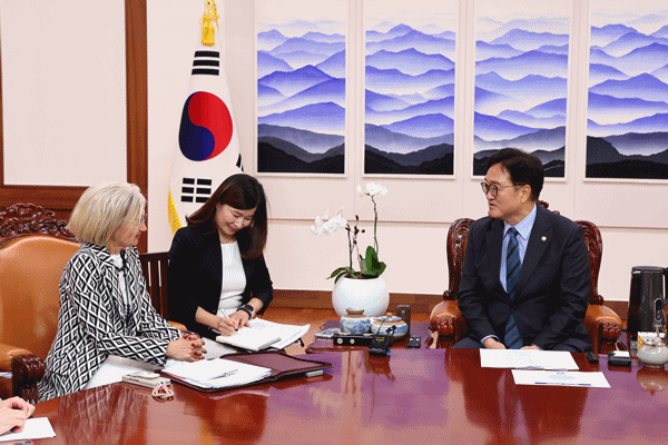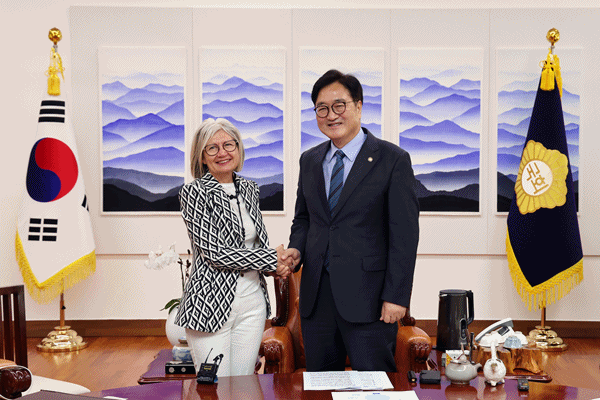(서울=NSP통신) 강은태 기자 = 우원식 국회의장은 7일 오전 의장집무실에서 에밀리아 가토 주한이탈리아 대사를 접견했다.