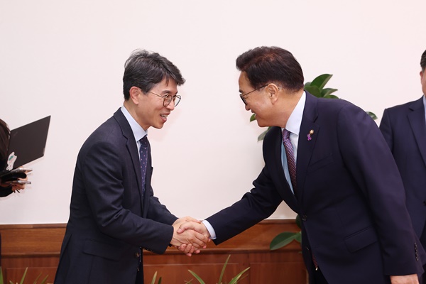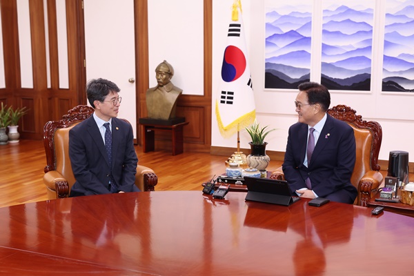 (서울=NSP통신) 강은태 기자 = 우원식 국회의장은 29일 오후 국회의장 집무실에서 김완섭 환경부장관을 접견했다.