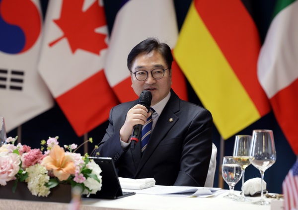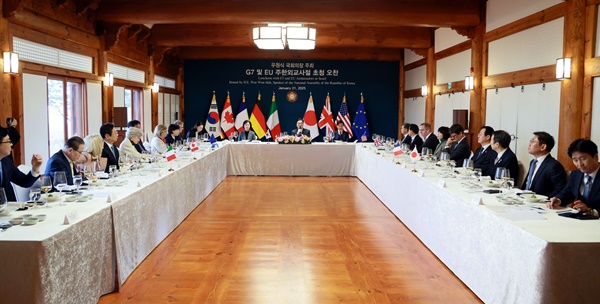 (서울=NSP통신) 강은태 기자 = 우원식 국회의장은 21일 G7과 EU 주한 외교사절 8명을 국회 사랑재로 초청해 오찬 간담회를 갖고 비상계엄 이후 정국 현안과 한·G7, 한·EU 관계 등에 대해 의견을 나눴다.