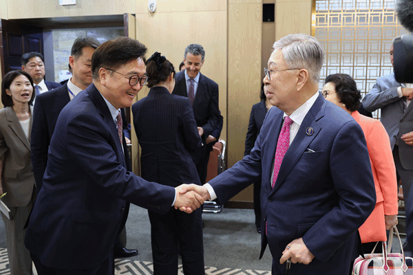 우 의장은 “한미동맹은 지난 70여 년간 법치와 민주주의 등 핵심 가치를 토대로 ‘글로벌 포괄 전략 동맹’으로 발전해왔다”며 “한미동맹의 전례 없는 발전에는 양국 의회의 초당적인 지지가 큰 역할을 했다”고 말했다.