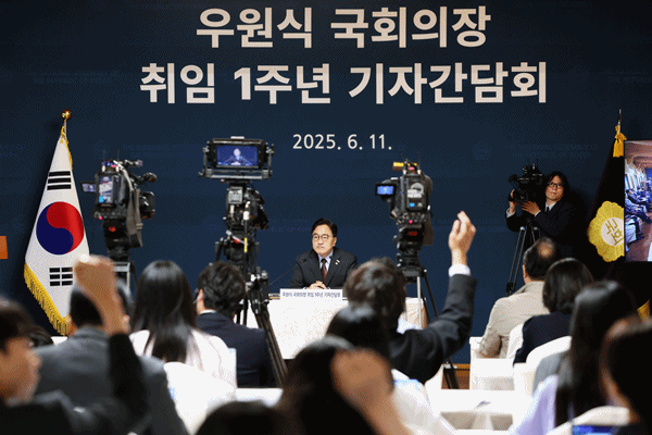 (서울=NSP통신) 강은태 기자 = 우원식 국회의장은 국회의사당 제4회의장에서 개최된 취임 1주년 기자간담회 모두발언에서 민주주의와 민생을 지킨 국회의장으로 평가받고 싶다고 말했다.