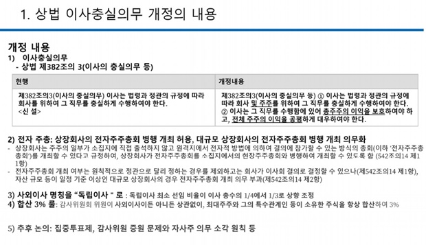 이어 “그러면 필요한 게 무엇일까? 지배주주 전 행을 막지 못하고 이사회가 제 기능을 못하는 걸 정상화 시키는 것, 그게 1998년 상법 개정의 의미라고 본다”고 분석했다.